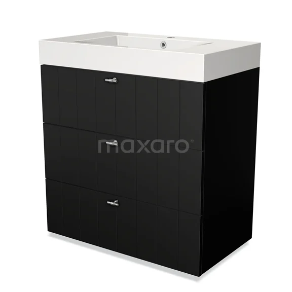 Modulo Bathroom furniture with sink | 80 cm Matte black Slat front Mineral marble 3 drawers