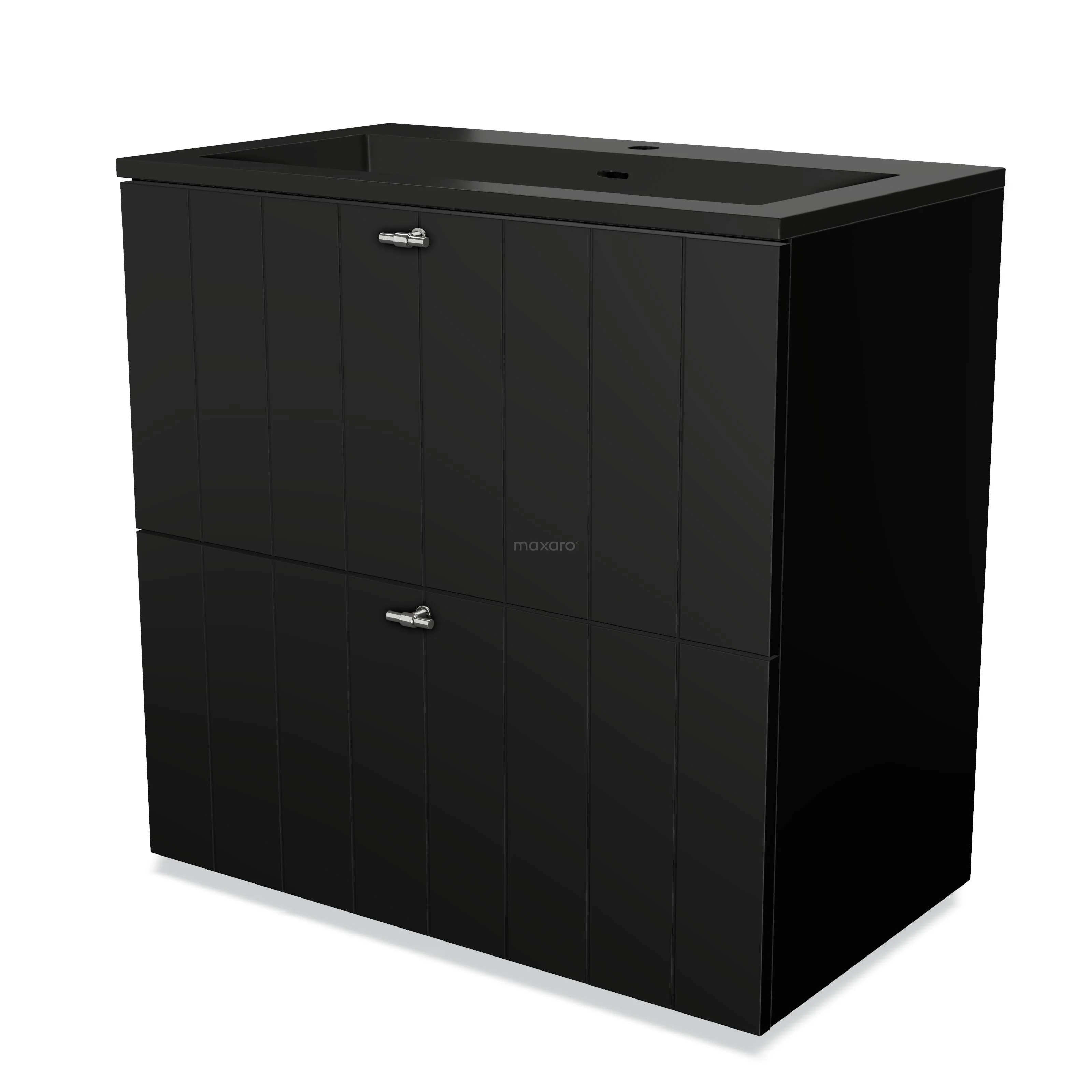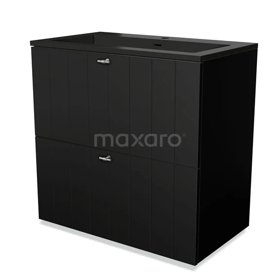 Modulo Bathroom furniture with sink | 80 cm Matte black Slat front Quartz 2 stacked drawers under each other