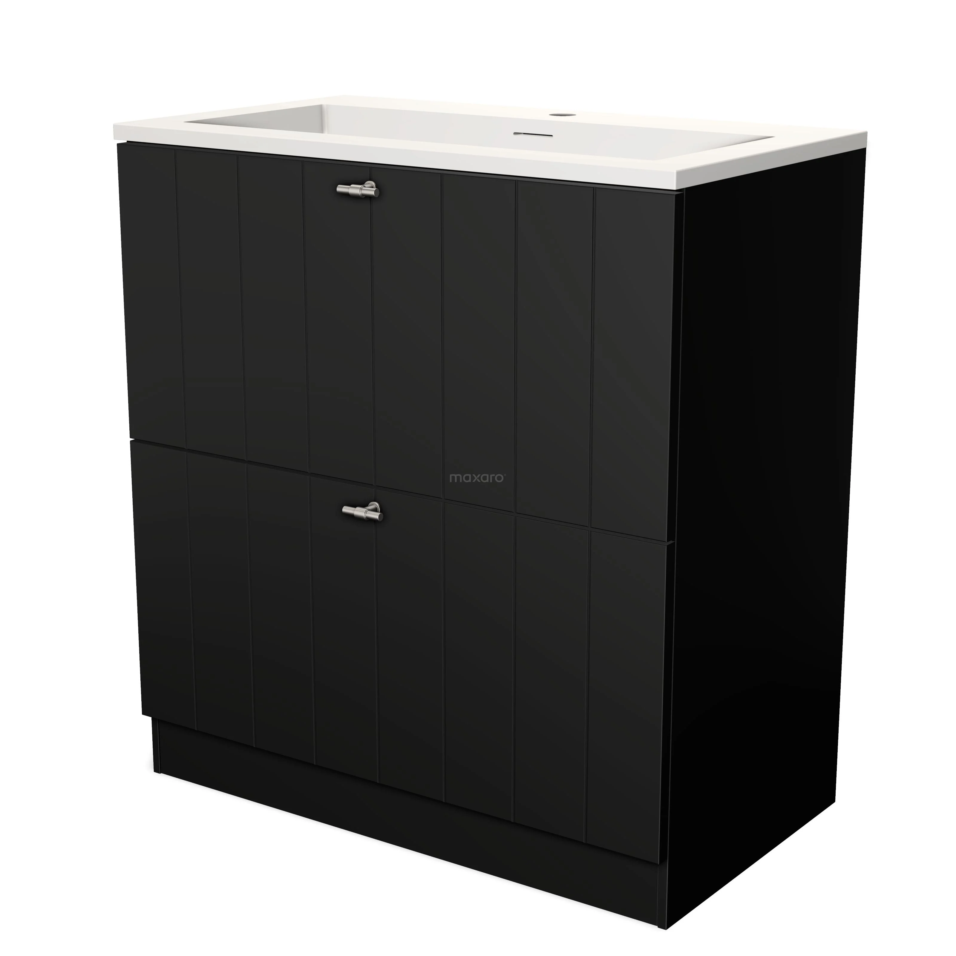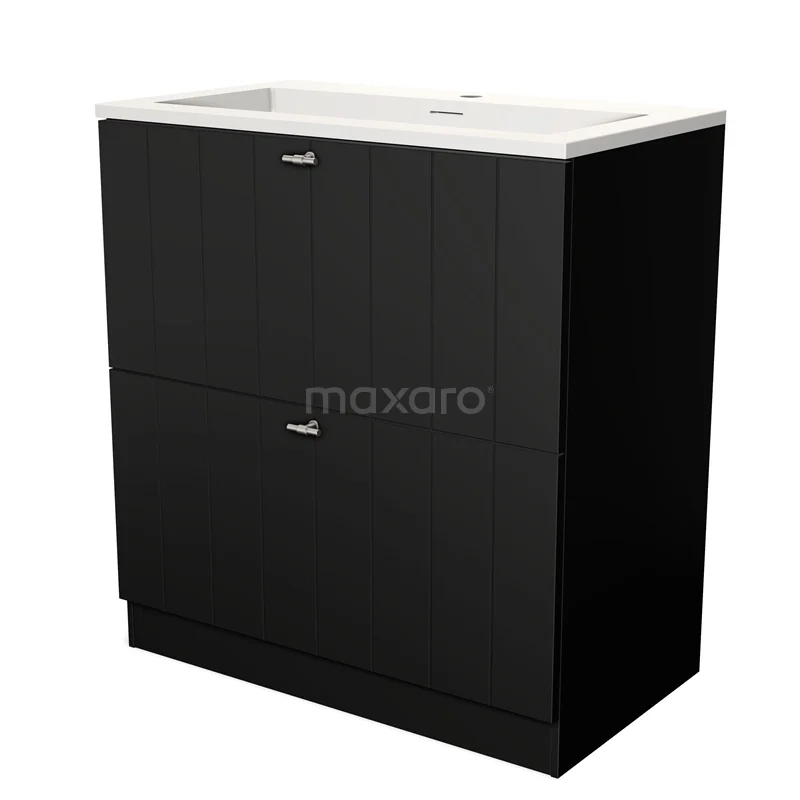 Modulo Bathroom furniture with sink | 80 cm Matte black Slat front Solid surface 2 high drawers standing drawers under each other