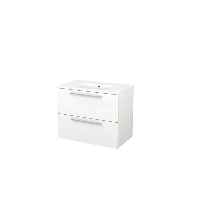 Modulo+ Bathroom furniture with sink | 80 cm Matte white Flat front Ceramic 2 Stacked drawers