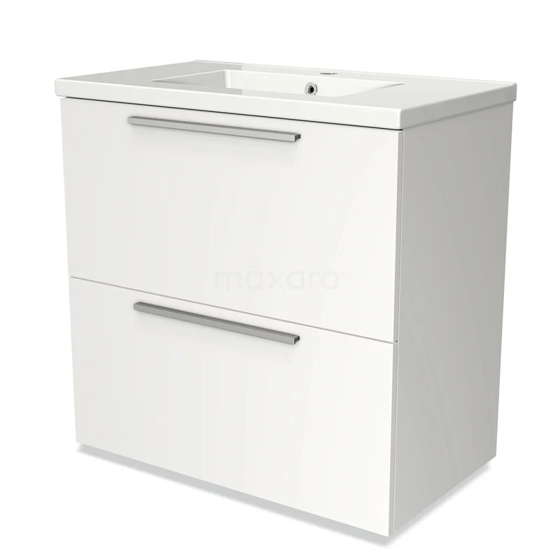 Modulo Bathroom furniture with sink | 80 cm Matte white Flat front Ceramic 2 stacked drawers under each other