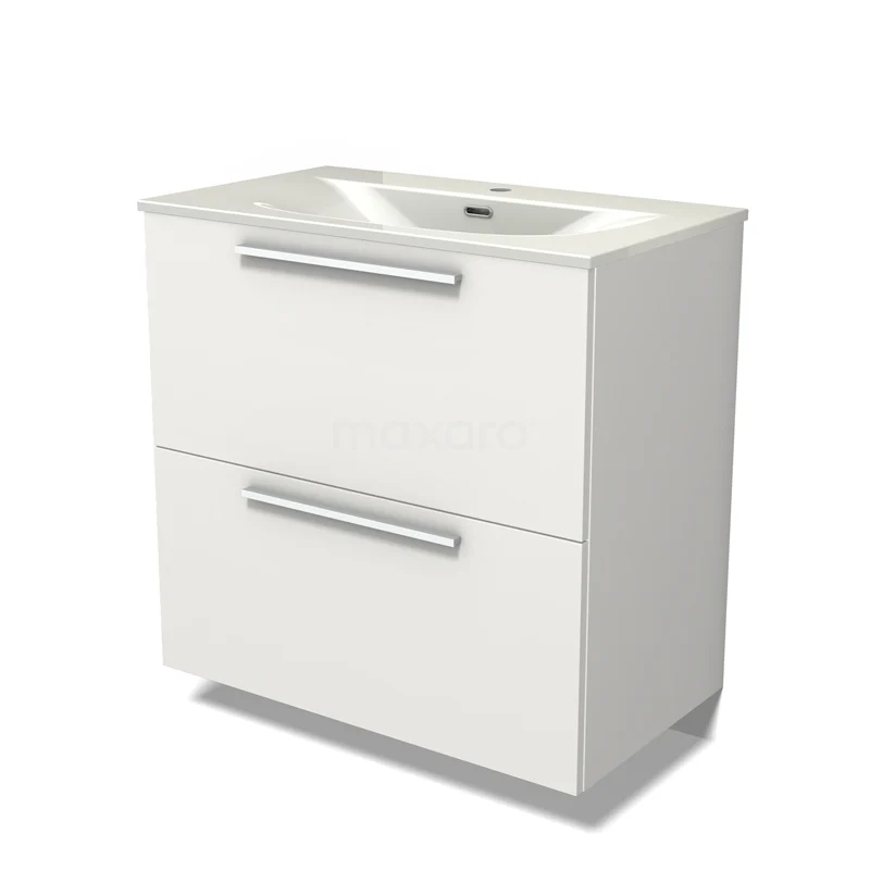 Modulo Bathroom furniture with sink | 80 cm Matte white Flat front Ceramic 2 stacked drawers under each other