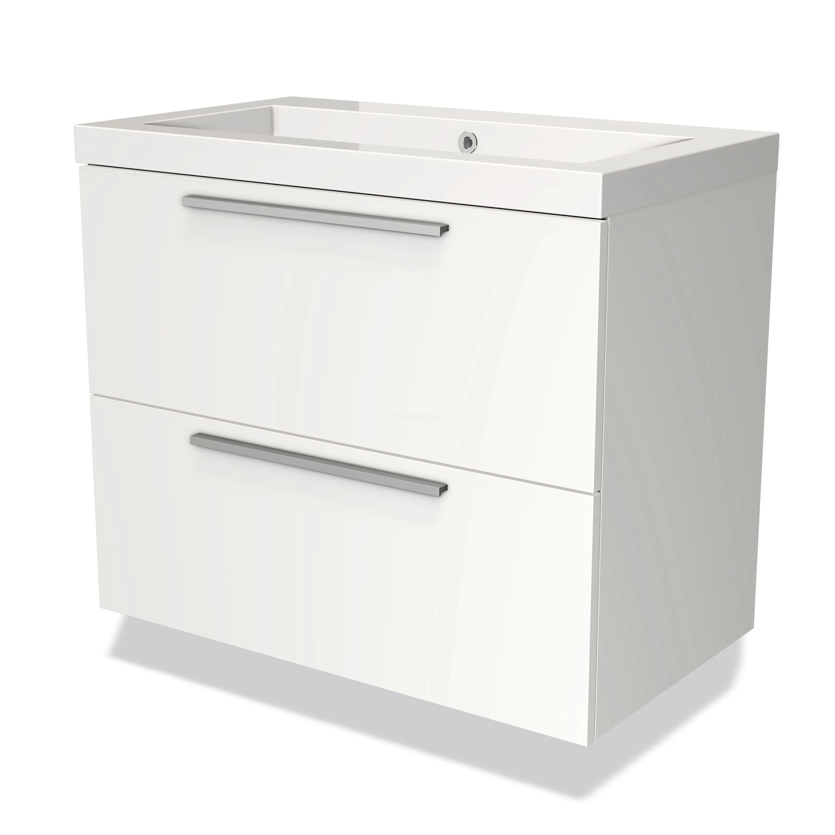 Modulo Bathroom furniture with sink | 80 cm Matte white Flat front Mineral marble 2 Stacked drawers