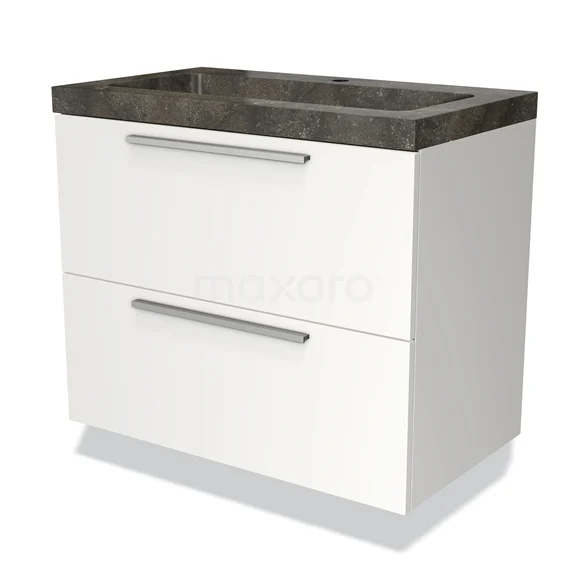 Modulo Bathroom furniture with sink | 80 cm Matte white Flat front Natural stone 2 Stacked drawers