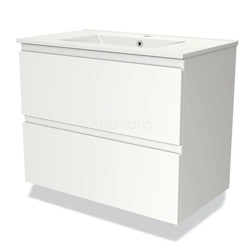 Modulo Bathroom furniture with sink | 80 cm Matte white Handle-less front Ceramic 2 Stacked drawers