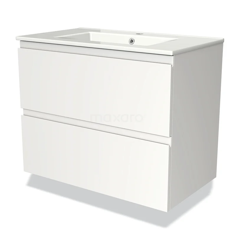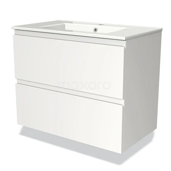 Modulo Bathroom furniture with sink | 80 cm Matte white Handle-less front Ceramic 2 Stacked drawers