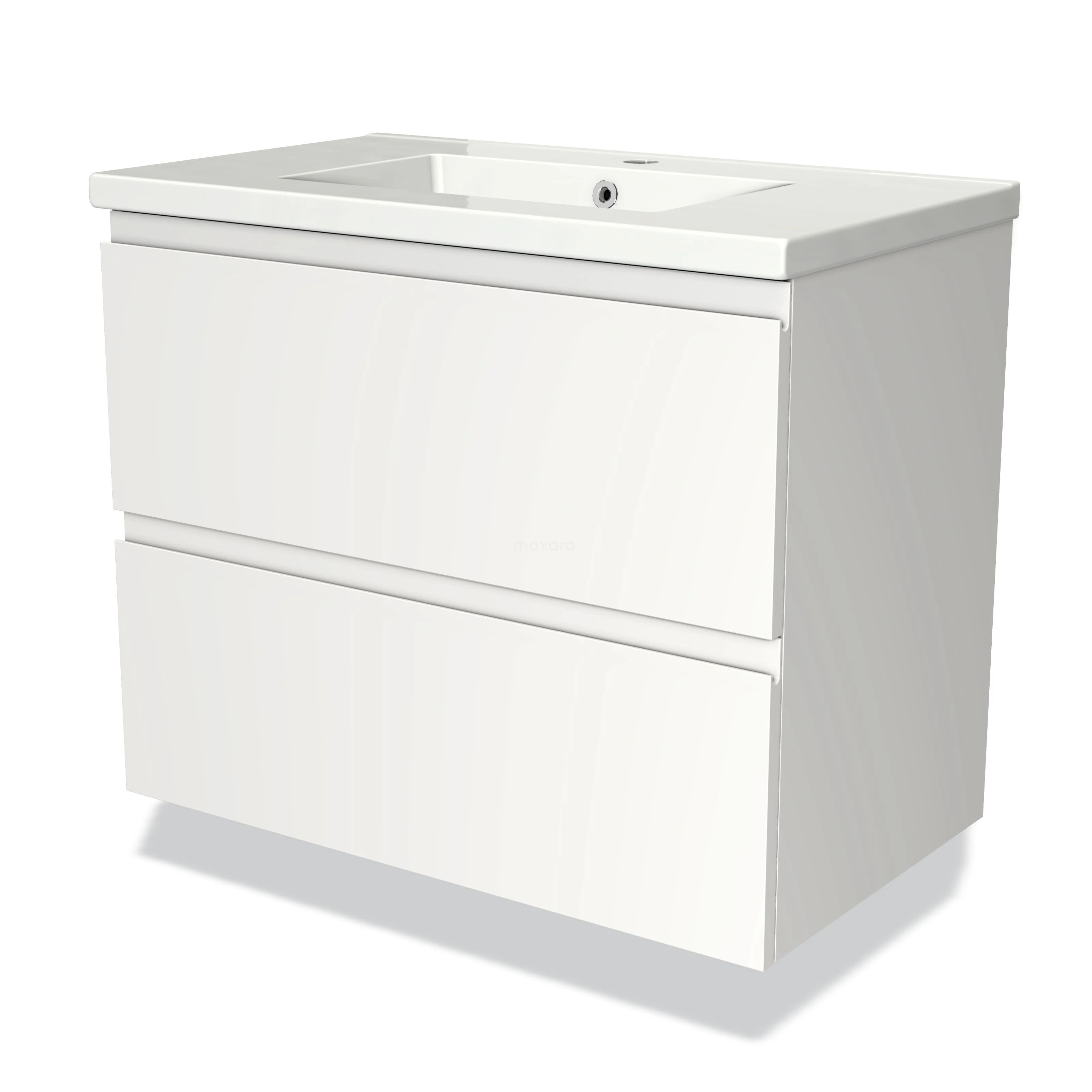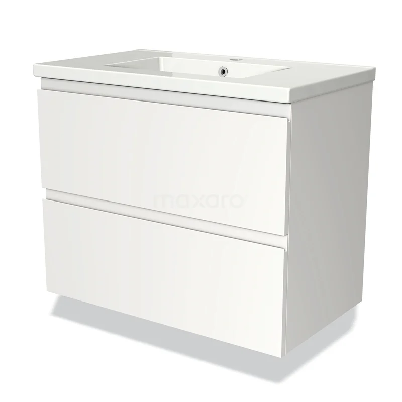 Modulo Bathroom furniture with sink | 80 cm Matte white Handle-less front Ceramic 2 Stacked drawers