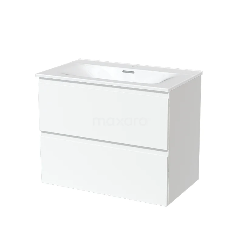 Modulo Bathroom furniture with sink | 80 cm Matte white Handle-less front Ceramic 2 Stacked drawers