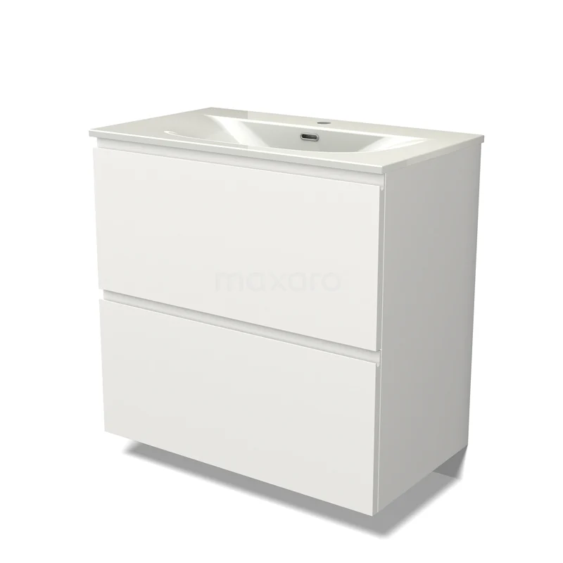Modulo Bathroom furniture with sink | 80 cm Matte white Handle-less front Ceramic 2 stacked drawers under each other