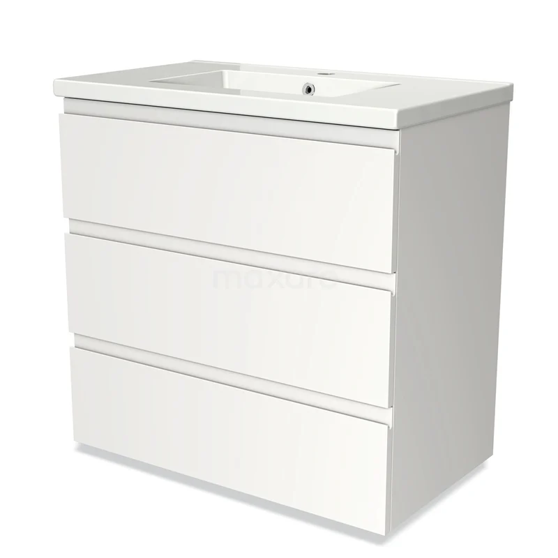 Modulo Bathroom furniture with sink | 80 cm Matte white Handle-less front Ceramic 3 drawers
