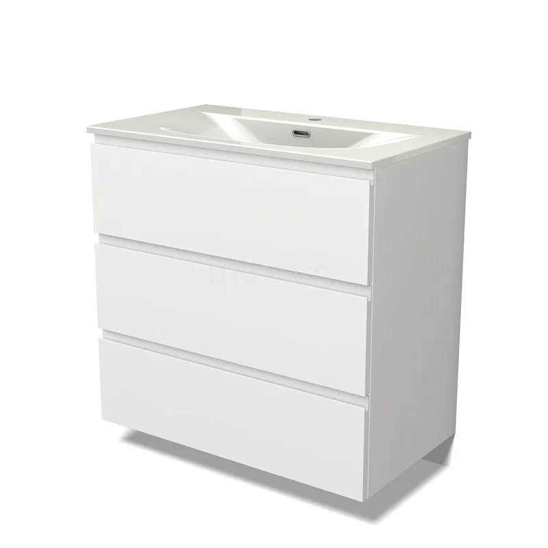 Modulo Bathroom furniture with sink | 80 cm Matte white Handle-less front Ceramic 3 drawers