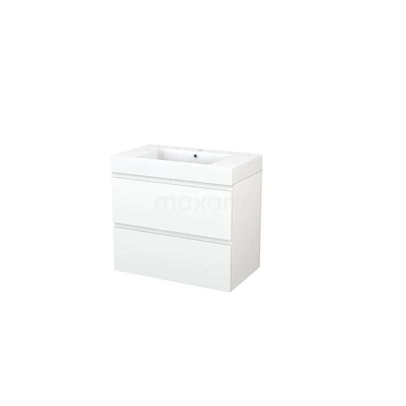 Modulo+ Bathroom furniture with sink | 80 cm Matte white Handle-less front Mineral marble 2 Stacked drawers