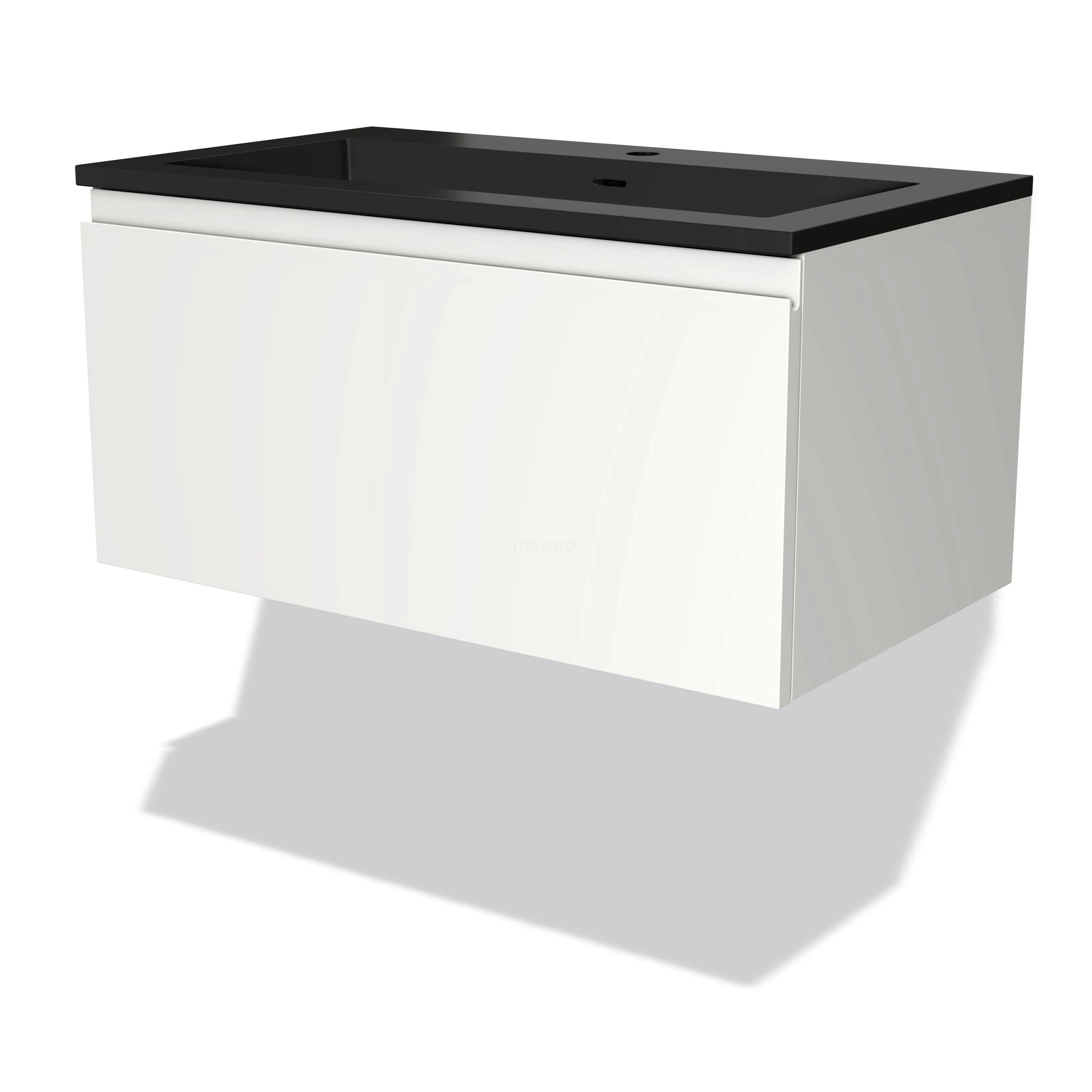 Modulo Bathroom furniture with sink | 80 cm Matte white Handle-less front Quartz 1 drawer