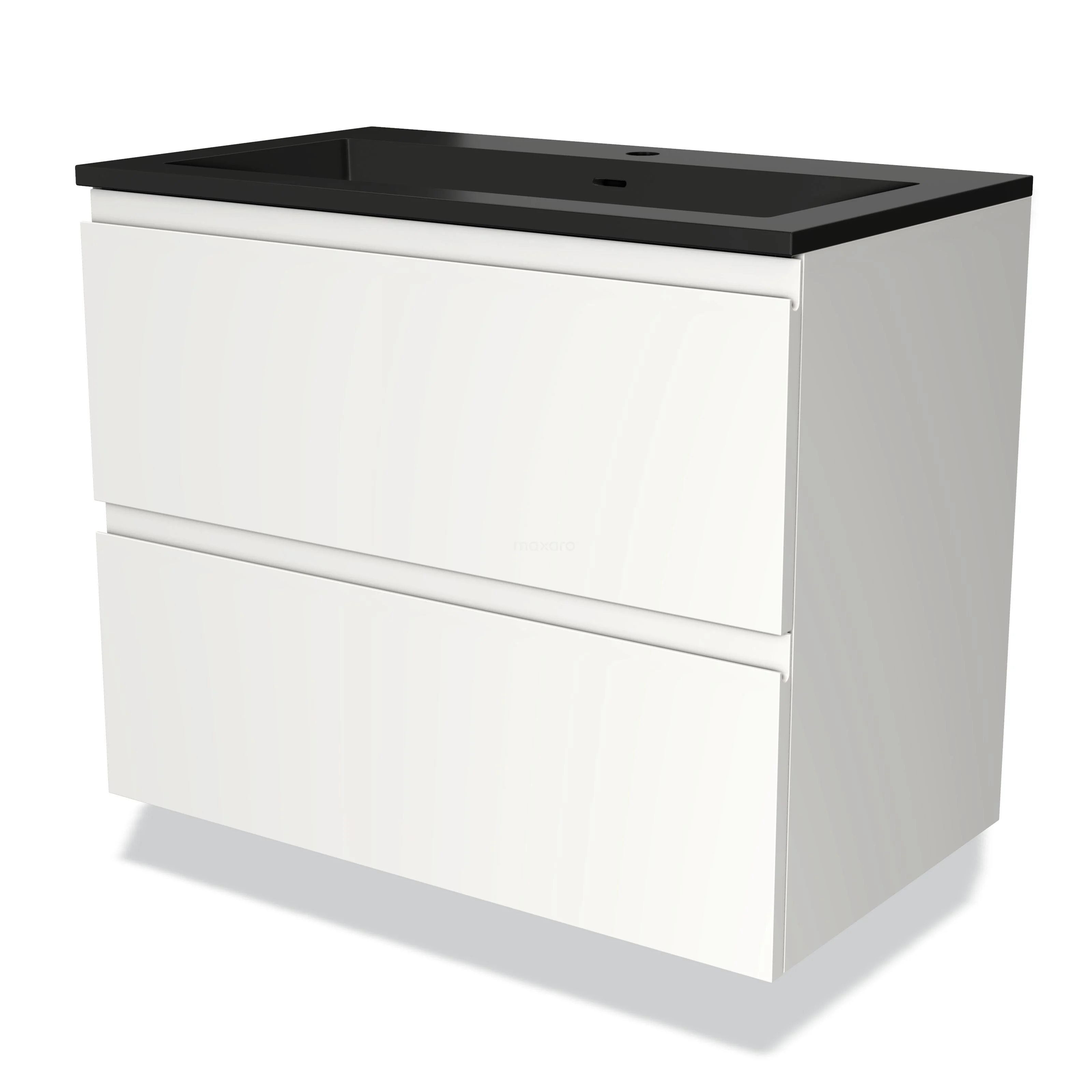 Modulo Bathroom furniture with sink | 80 cm Matte white Handle-less front Quartz 2 Stacked drawers