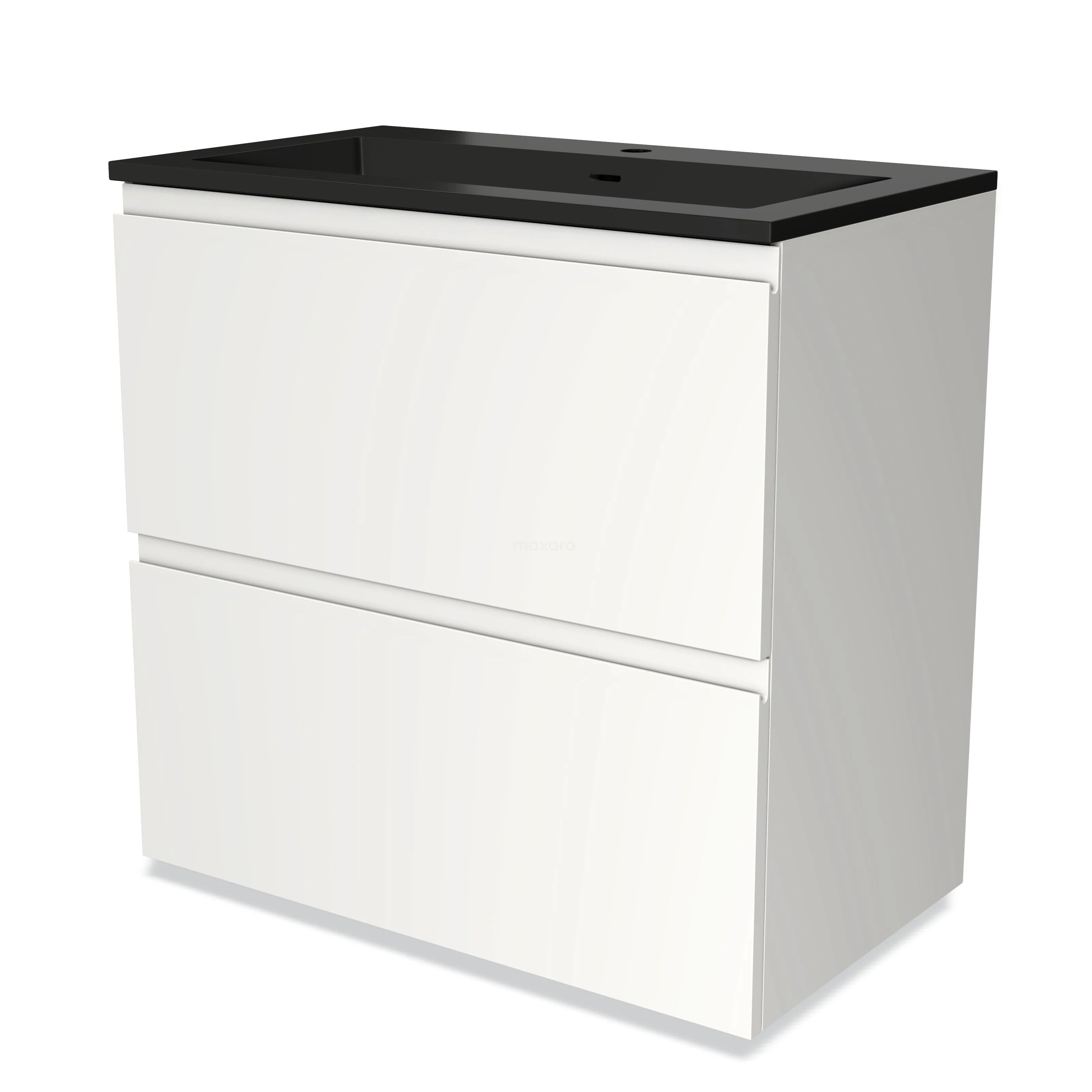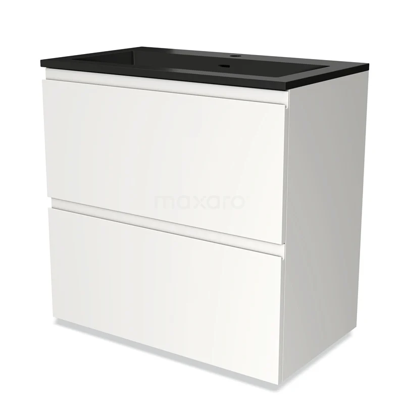 Modulo Bathroom furniture with sink | 80 cm Matte white Handle-less front Quartz 2 stacked drawers under each other