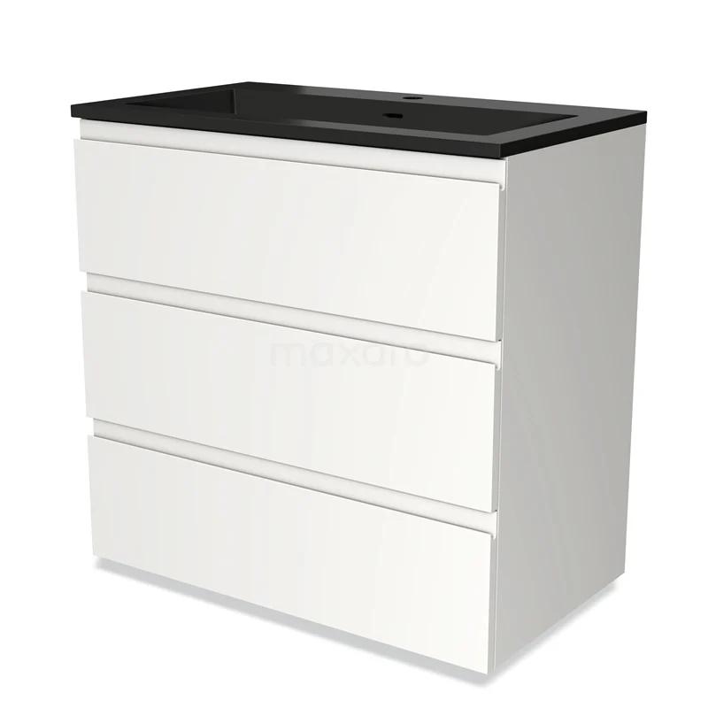 Modulo Bathroom furniture with sink | 80 cm Matte white Handle-less front Quartz 3 drawers
