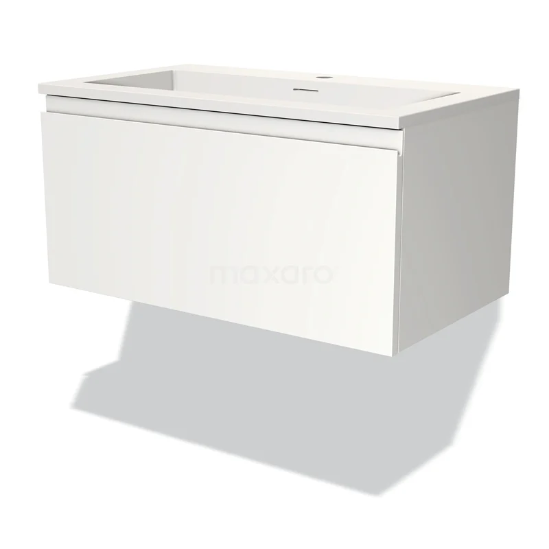 Modulo Bathroom furniture with sink | 80 cm Matte white Handle-less front Solid surface 1 drawer