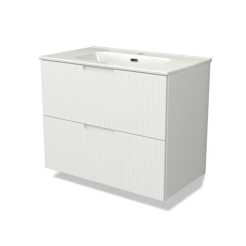 Modulo Bathroom furniture with sink | 80 cm Matte white Line front Ceramic 2 Stacked drawers
