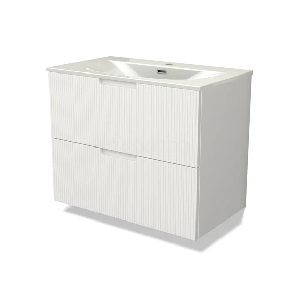 Modulo Bathroom furniture with sink | 80 cm Matte white Line front Ceramic 2 Stacked drawers