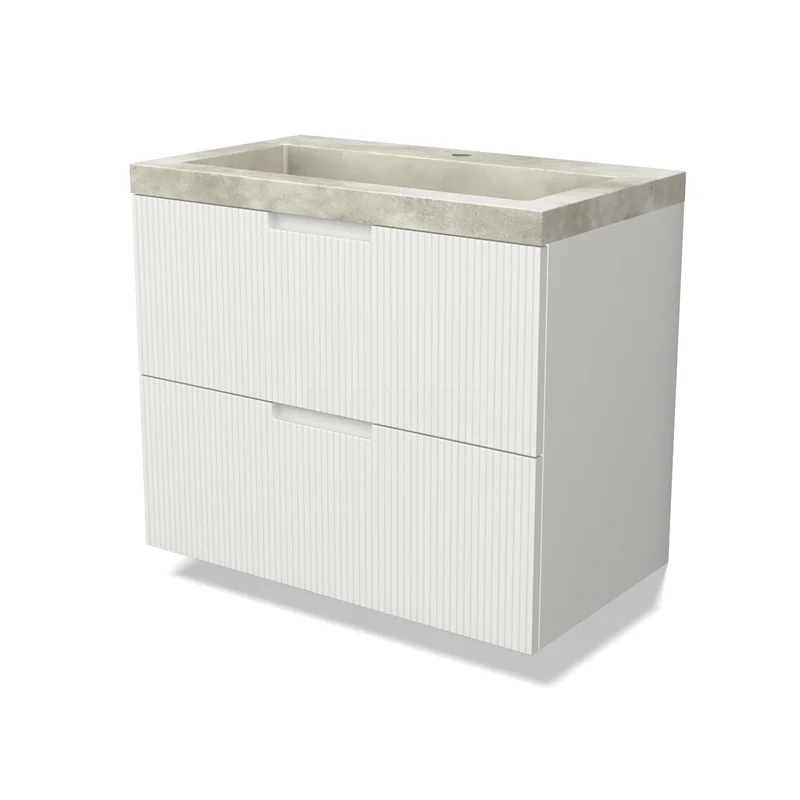 Modulo Bathroom furniture with sink | 80 cm Matte white Line front Concrete 2 Stacked drawers