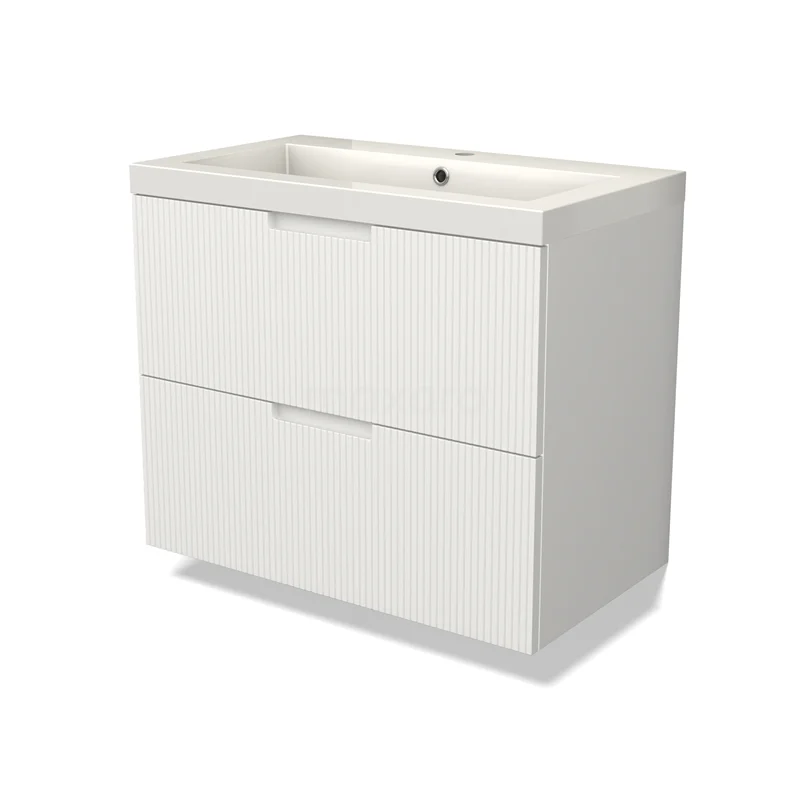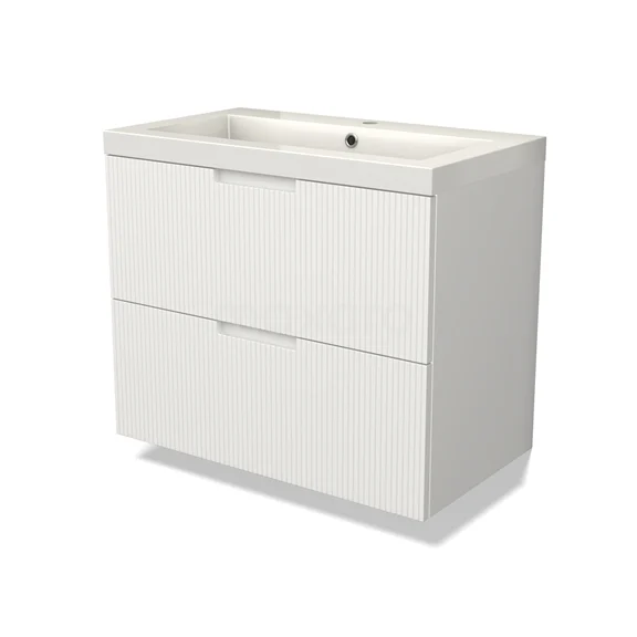 Modulo Bathroom furniture with sink | 80 cm Matte white Line front Mineral marble 2 Stacked drawers