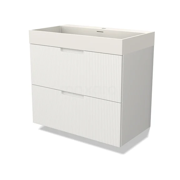Modulo Bathroom furniture with sink | 80 cm Matte white Line front Solid surface 2 Stacked drawers
