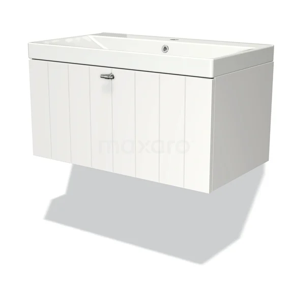 Modulo Bathroom furniture with sink | 80 cm Matte white Slat front Ceramic 1 drawer
