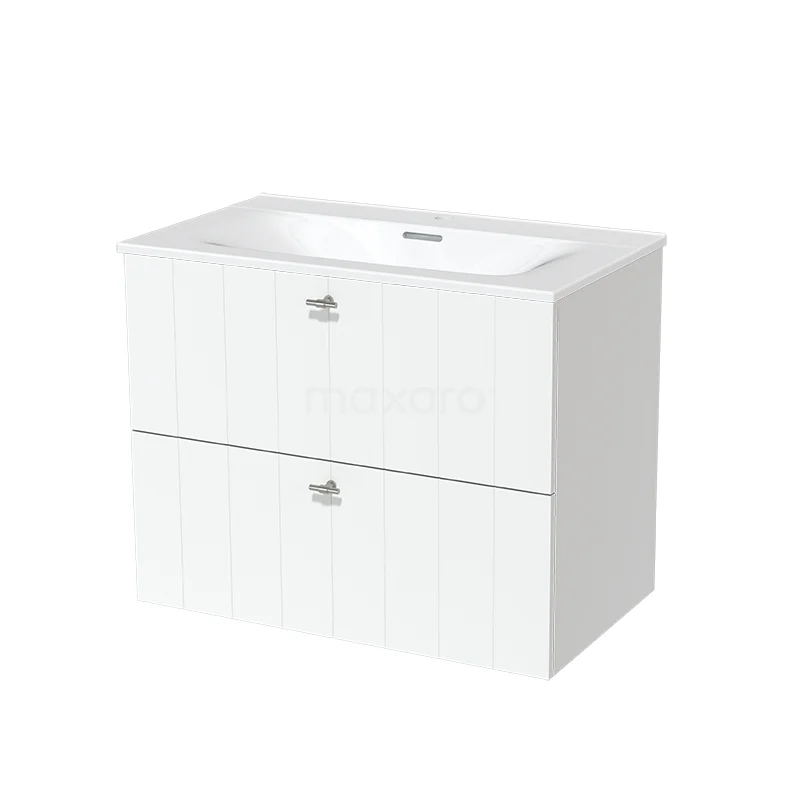 Modulo Bathroom furniture with sink | 80 cm Matte white Slat front Ceramic 2 Stacked drawers