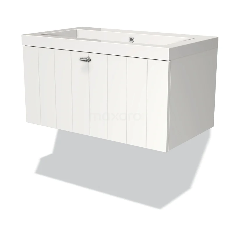 Modulo Bathroom furniture with sink | 80 cm Matte white Slat front Mineral marble 1 drawer