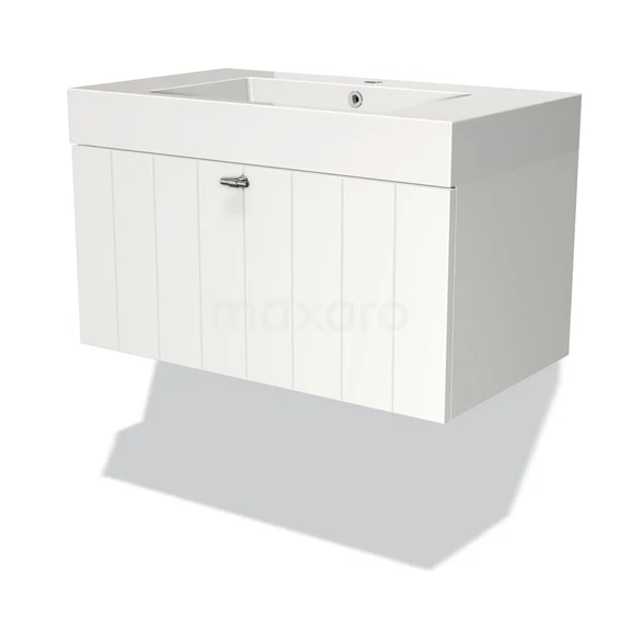 Modulo Bathroom furniture with sink | 80 cm Matte white Slat front Mineral marble 1 drawer