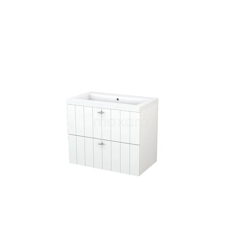 Modulo+ Bathroom furniture with sink | 80 cm Matte white Slat front Mineral marble 2 Stacked drawers