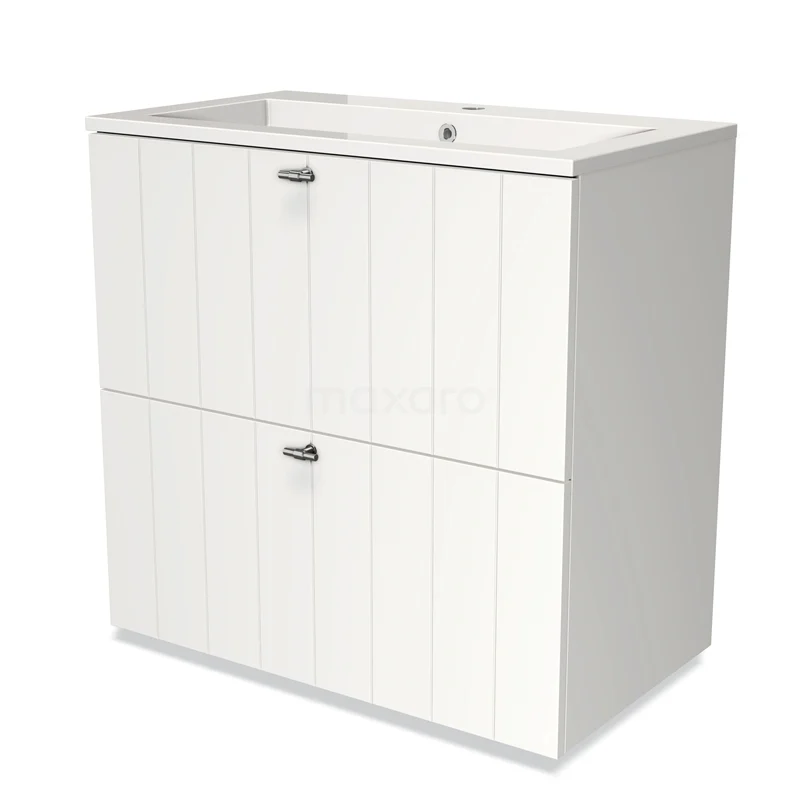 Modulo Bathroom furniture with sink | 80 cm Matte white Slat front Mineral marble 2 stacked drawers under each other