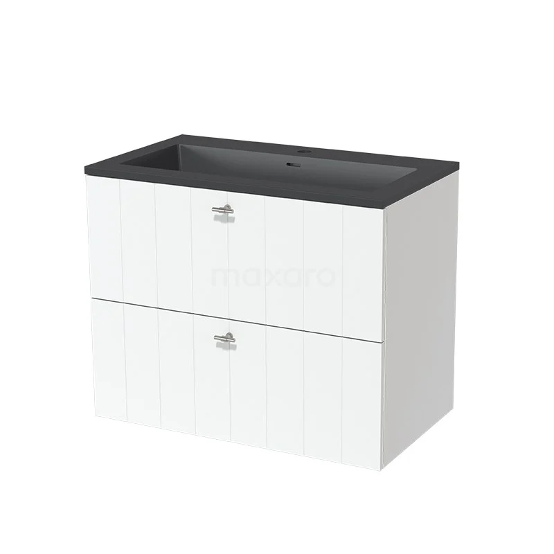 Modulo Bathroom furniture with sink | 80 cm Matte white Slat front Quartz 2 Stacked drawers