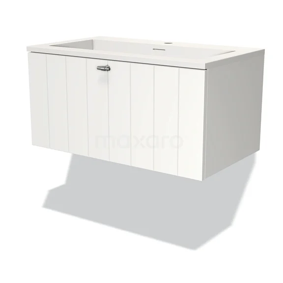 Modulo Bathroom furniture with sink | 80 cm Matte white Slat front Solid surface 1 drawer