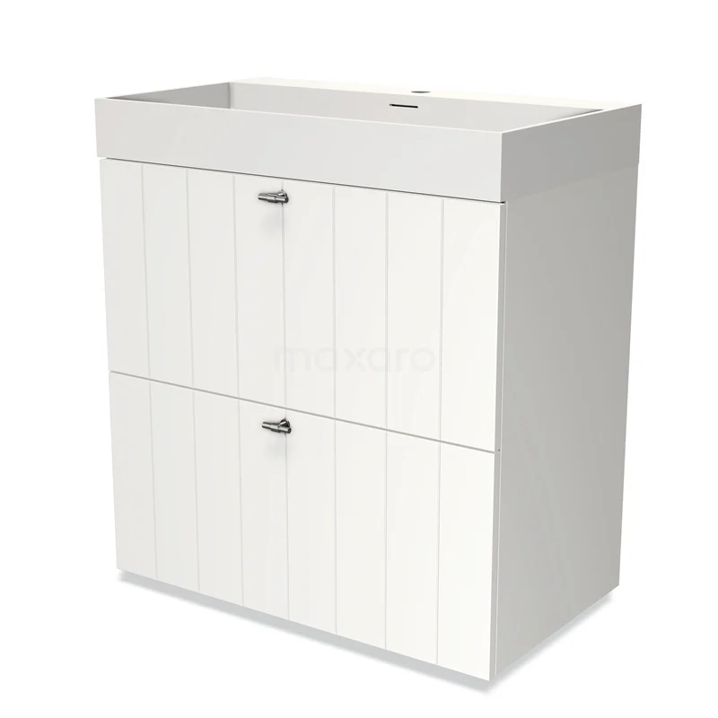 Modulo Bathroom furniture with sink | 80 cm Matte white Slat front Solid surface 2 stacked drawers under each other