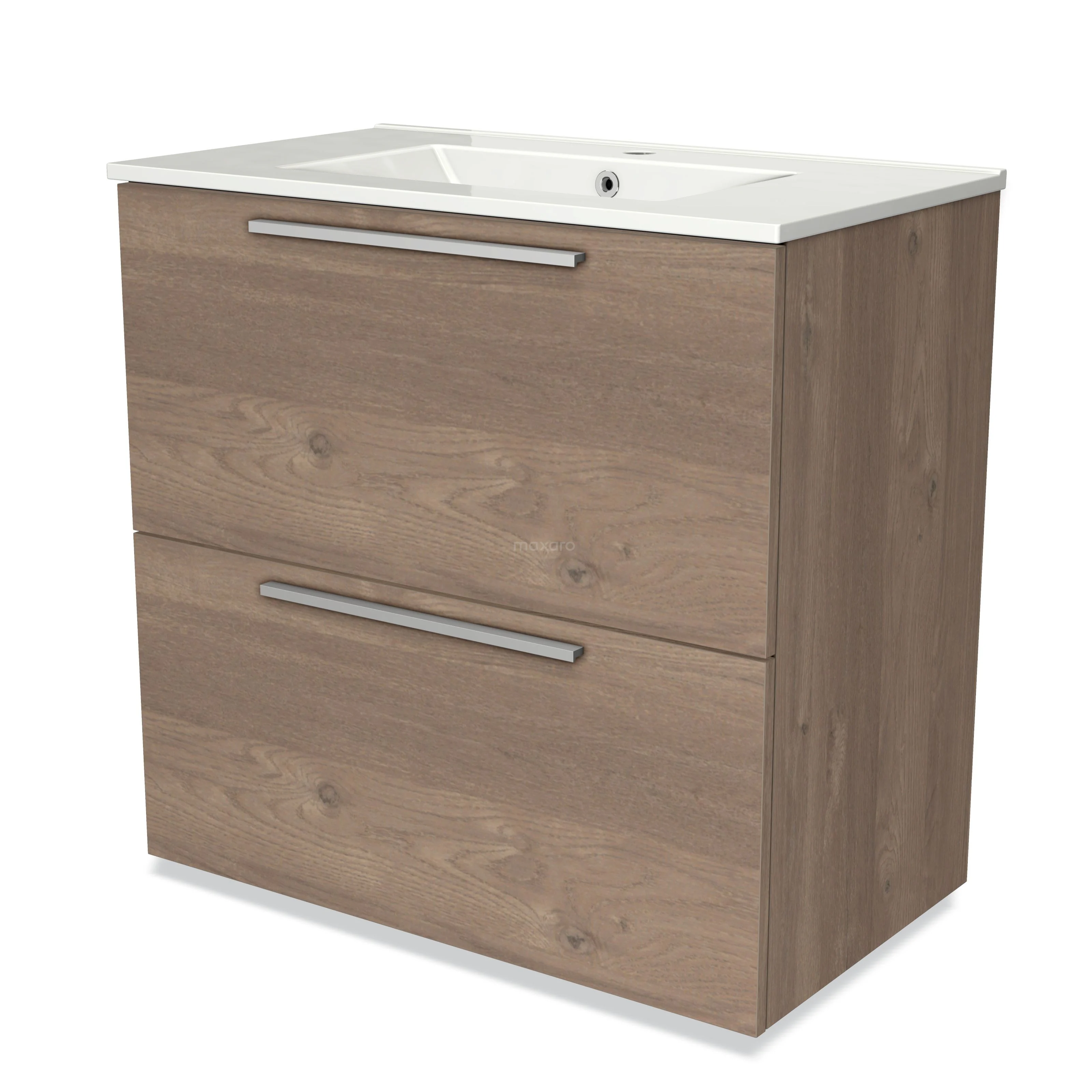 Modulo Bathroom furniture with sink | 80 cm Mid brown oak Flat front Ceramic 2 stacked drawers under each other