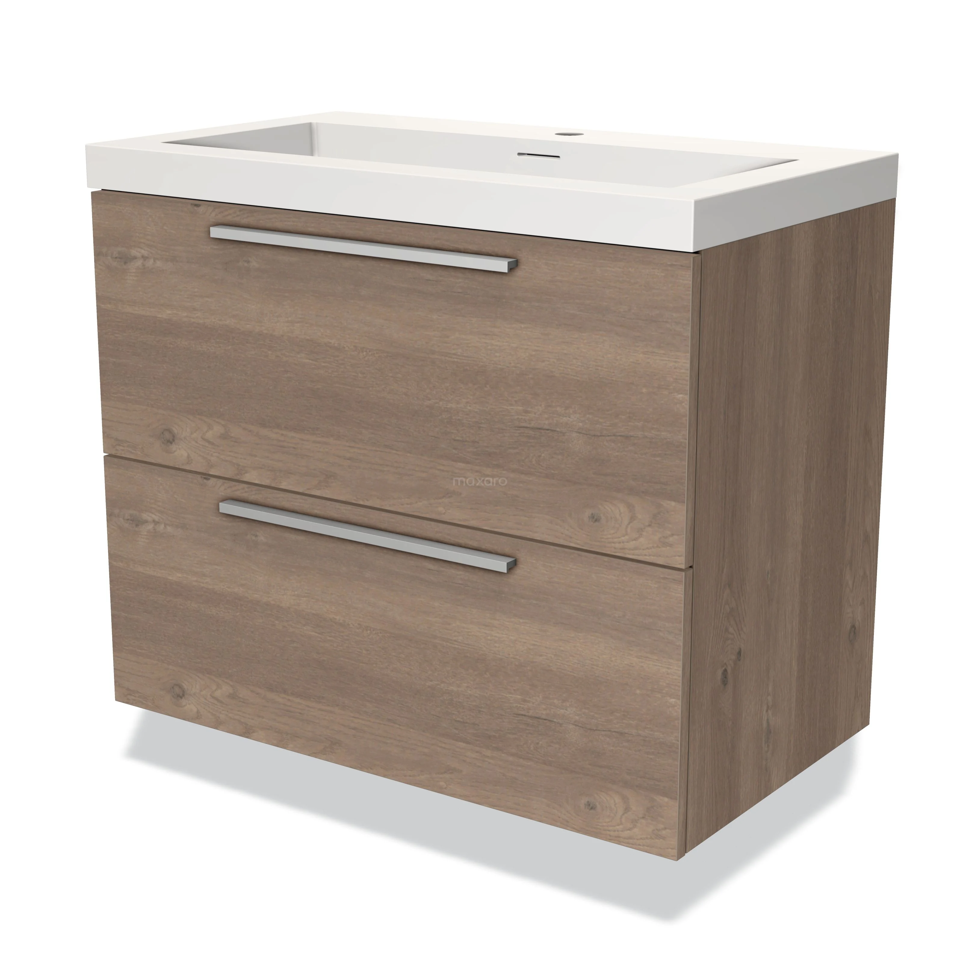 Modulo Bathroom furniture with sink | 80 cm Mid brown oak Flat front Solid surface 2 Stacked drawers