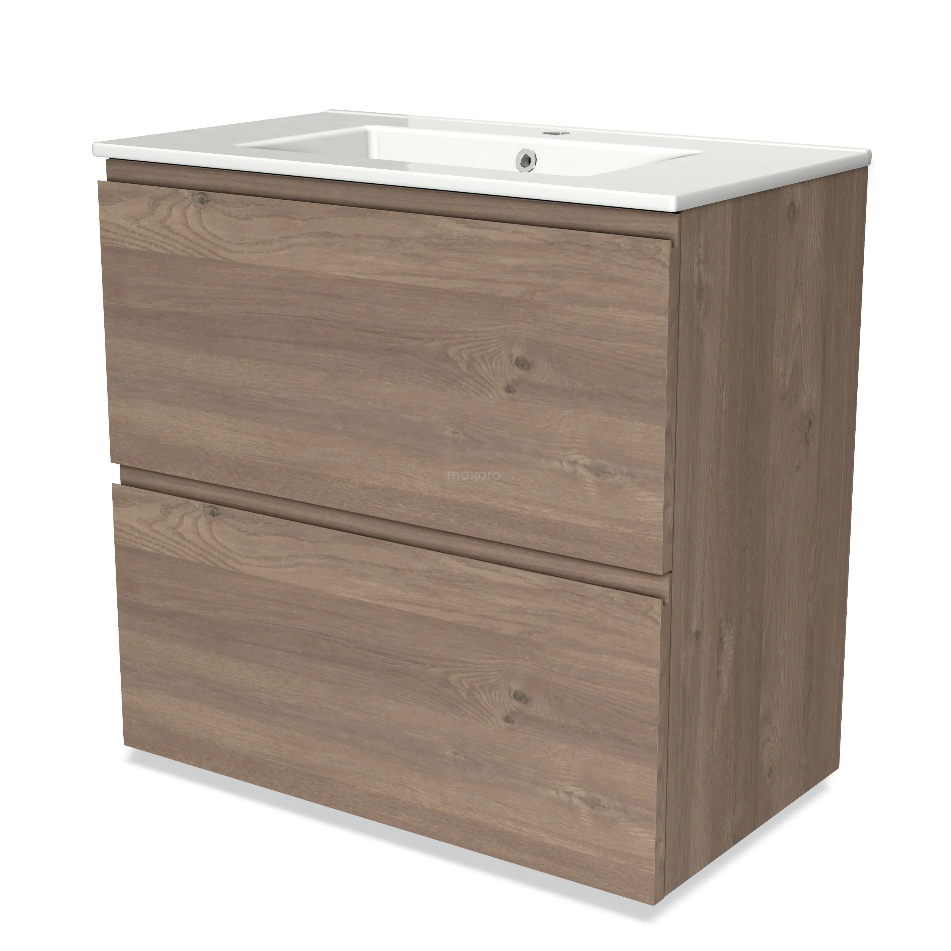 Modulo Bathroom furniture with sink | 80 cm Mid brown oak Handle-less front Ceramic 2 stacked drawers under each other