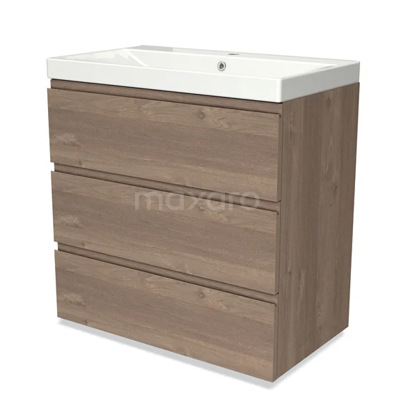 Modulo Bathroom furniture with sink | 80 cm Mid brown oak Handle-less front Ceramic 3 drawers
