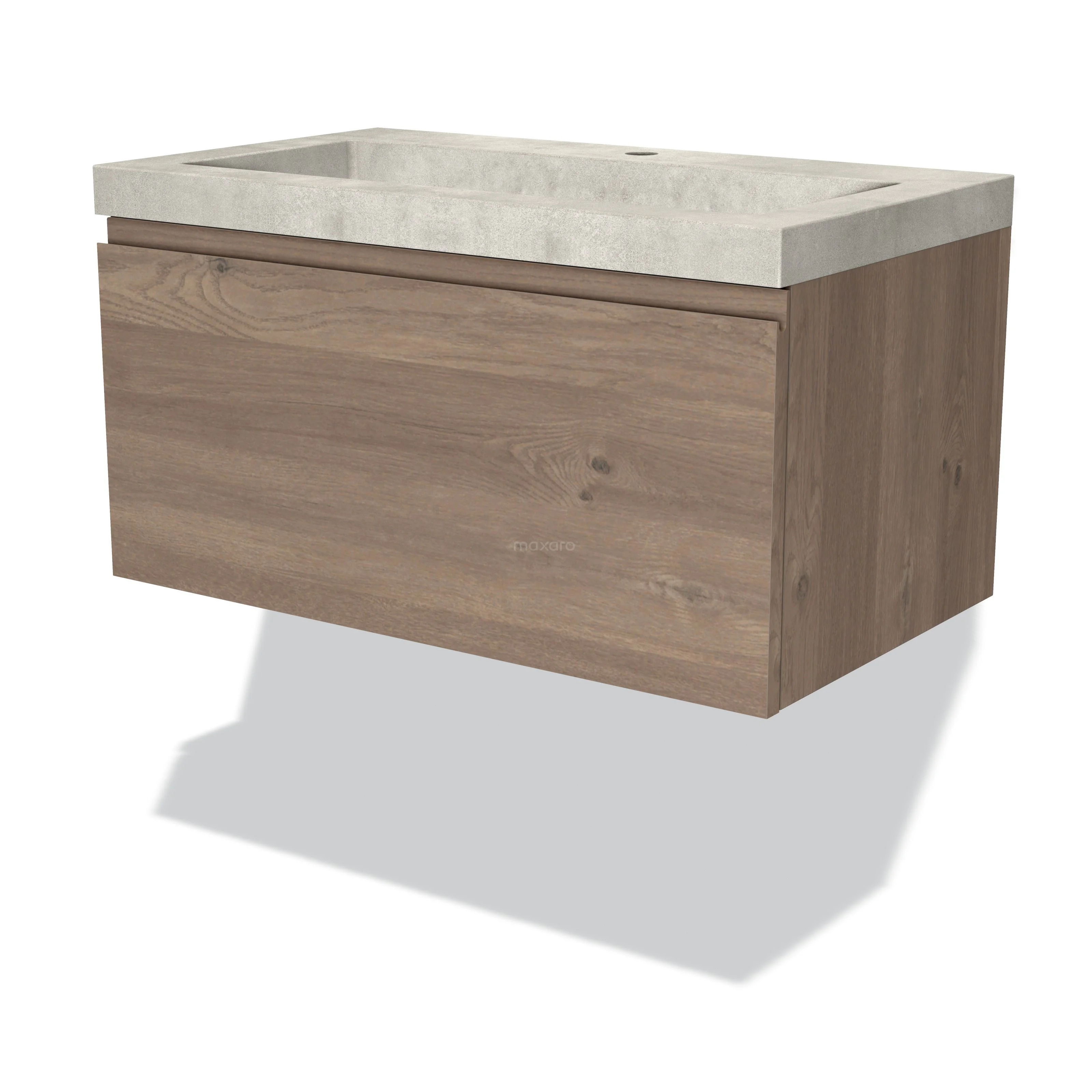 Modulo Bathroom furniture with sink | 80 cm Mid brown oak Handle-less front Concrete 1 drawer