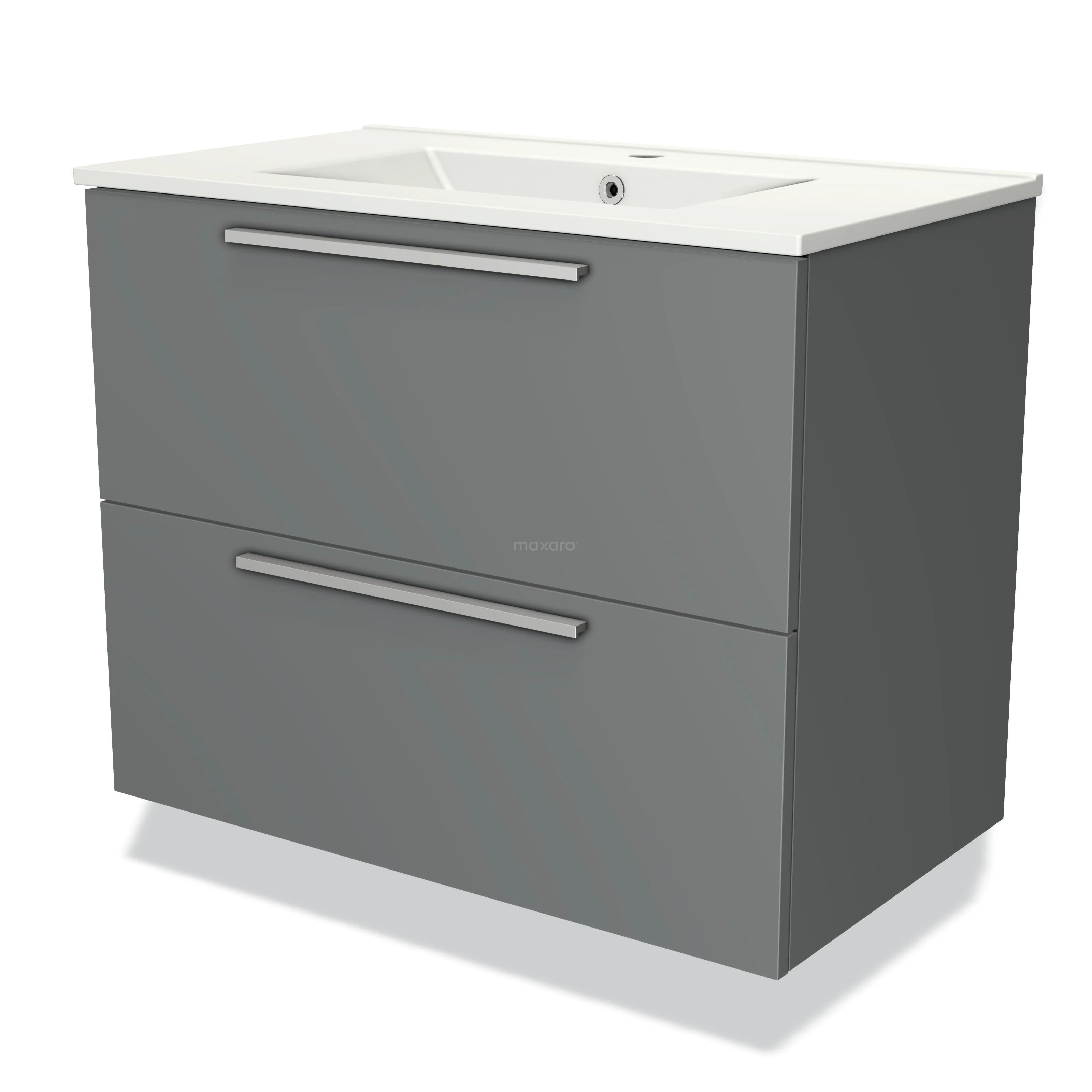 Modulo Bathroom furniture with sink | 80 cm Mid grey Flat front Ceramic 2 Stacked drawers