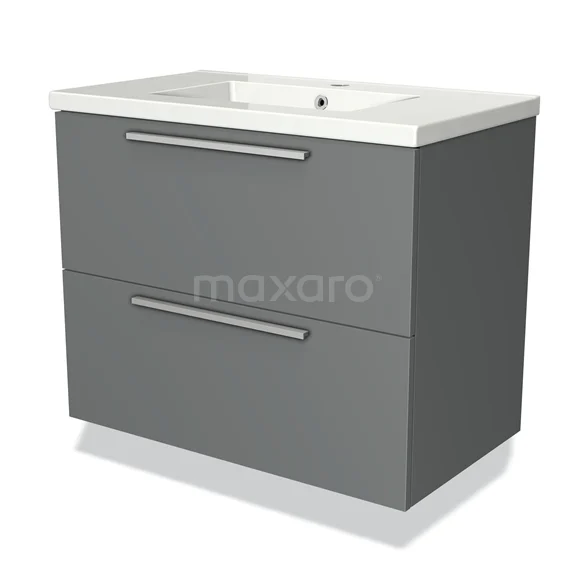 Modulo Bathroom furniture with sink | 80 cm Mid grey Flat front Ceramic 2 Stacked drawers