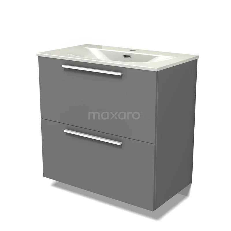 Modulo Bathroom furniture with sink | 80 cm Mid grey Flat front Ceramic 2 stacked drawers under each other