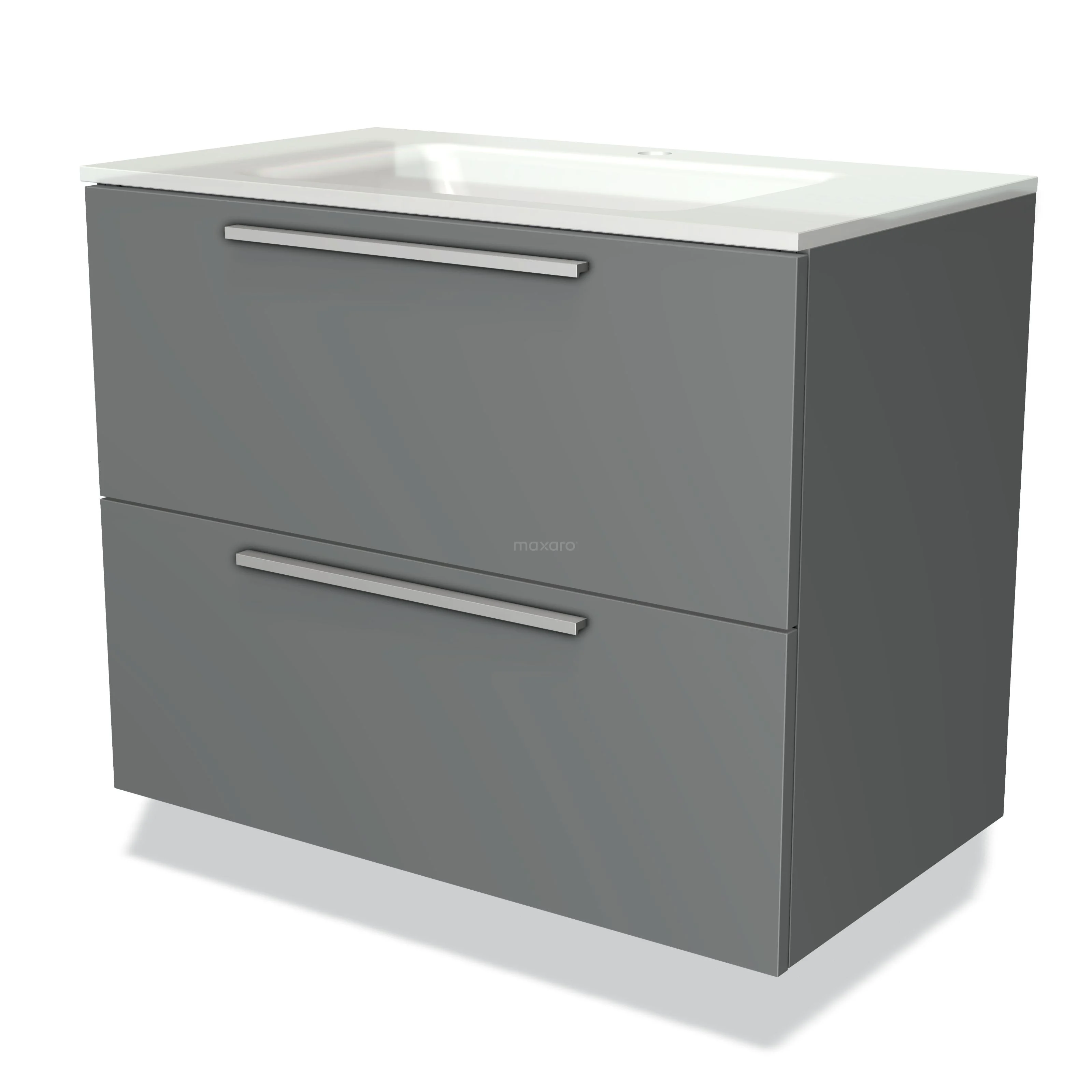 Modulo Bathroom furniture with sink | 80 cm Mid grey Flat front Glass 2 Stacked drawers
