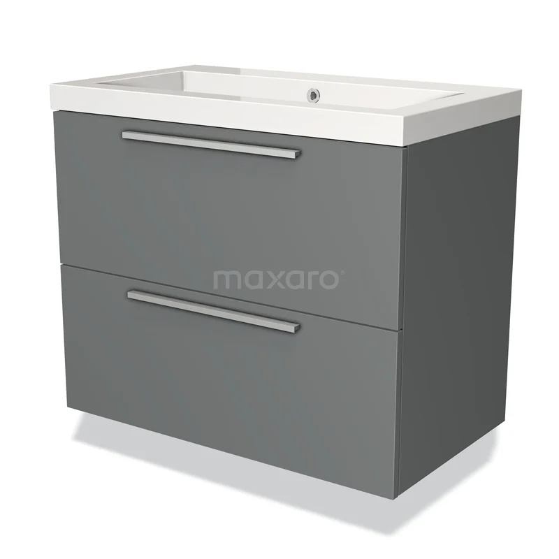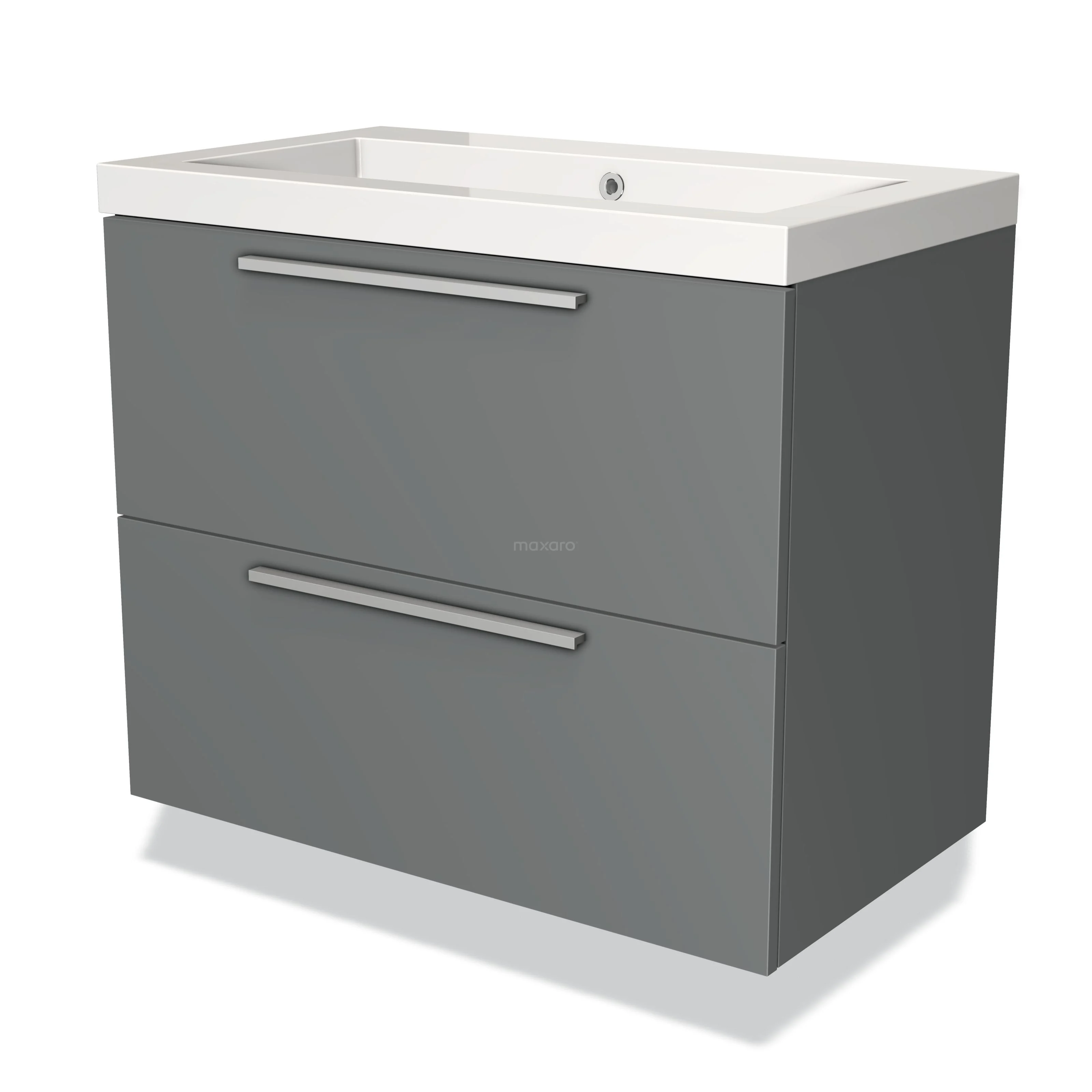 Modulo Bathroom furniture with sink | 80 cm Mid grey Flat front Mineral marble 2 Stacked drawers