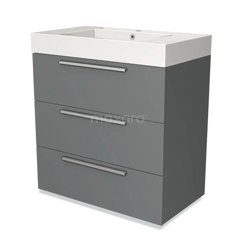 Modulo Bathroom furniture with sink | 80 cm Mid grey Flat front Mineral marble 3 drawers
