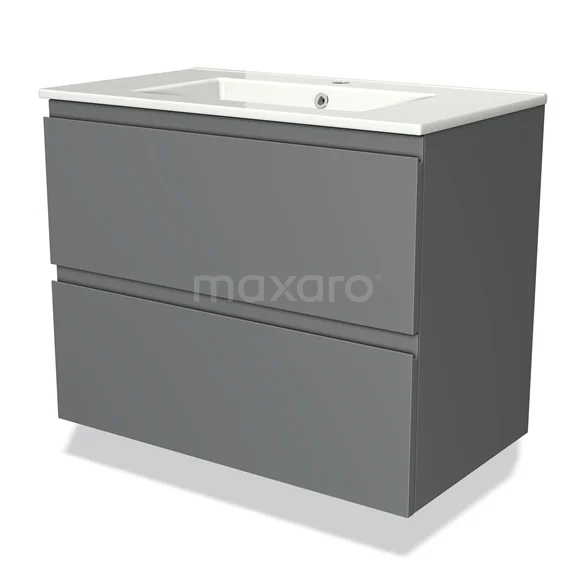 Modulo Bathroom furniture with sink | 80 cm Mid grey Handle-less front Ceramic 2 Stacked drawers