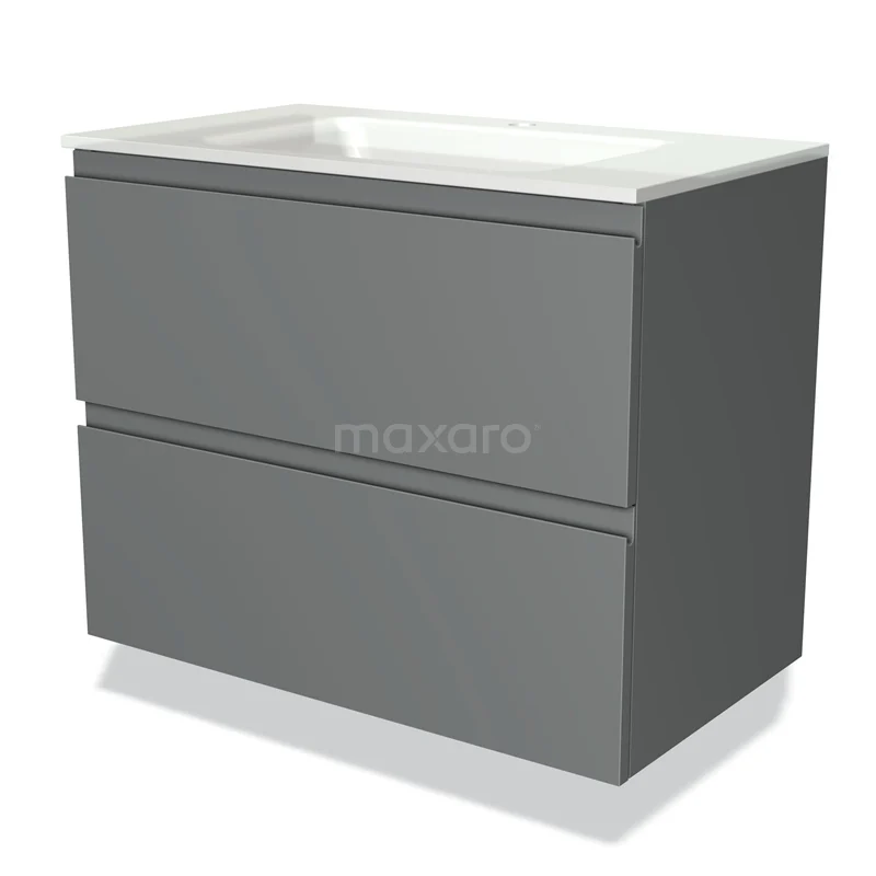 Modulo Bathroom furniture with sink | 80 cm Mid grey Handle-less front Glass 2 Stacked drawers