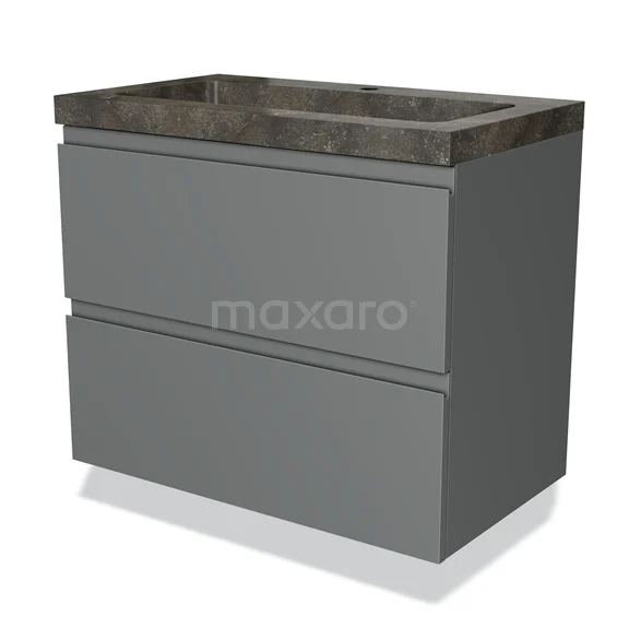 Modulo Bathroom furniture with sink | 80 cm Mid grey Handle-less front Natural stone 2 Stacked drawers