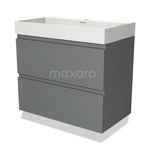 Modulo Bathroom furniture with sink | 80 cm Mid grey Handle-less front Solid surface 2 Stacked drawers